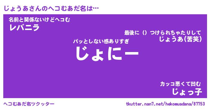 | 意味不明あだ名 | 『ペロリンじょうあ』『永久保存じょうあ』 |