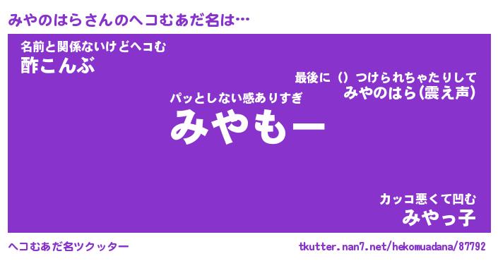 | ファンタジー風あだ名 | 『ミヤフェル』『エターナルミヤノハラー』 |