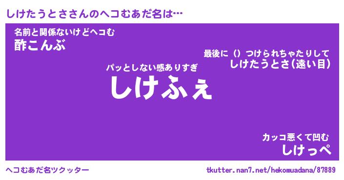 | ヒーロー風カッコイイあだ名 | 『スーパーシケタウトサ』『暗黒騎士シケ』 |