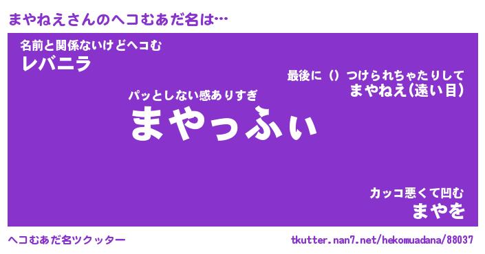 | 意味不明あだ名 | 『ペロリンまやねえ』『永久保存まやねえ』 |