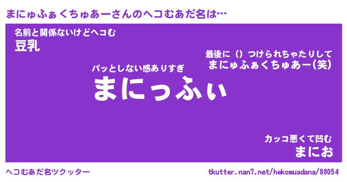| 男性向けラノベタイトル風あだ名 | 『まにゅふぁくちゅあーの憂鬱』 |