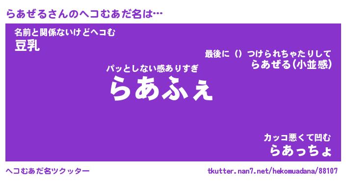 | ポケモン風あだ名 | 『ラアチュウ』『ラアゼダネ』 |