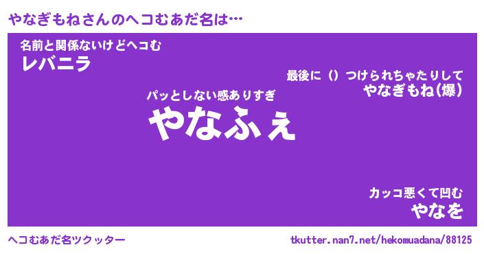 | ファンタジー風あだ名 | 『ヤナフェル』『エターナルヤナギモネー』 |
