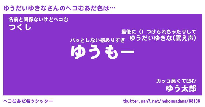 | ポケモン風あだ名 | 『ユウチュウ』『ユウダダネ』 |
