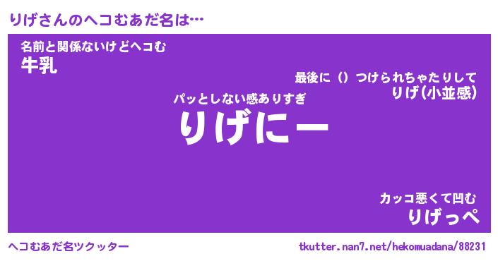 | 意味不明あだ名 | 『ペロリンりげ』『りげフォーエバー』 |