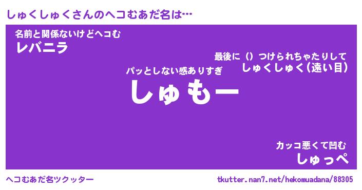 | ヒーロー風カッコイイあだ名 | 『スーパーシュクシュク』『魔戒騎士シュ』 |