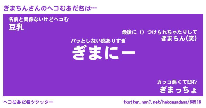 | 意味不明あだ名 | 『ペロリンぎまちん』『永久保存ぎまちん』 |