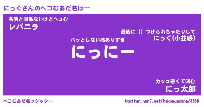| ポケモン風あだ名 | 『ニッチュウ』『ニッグダネ』 |