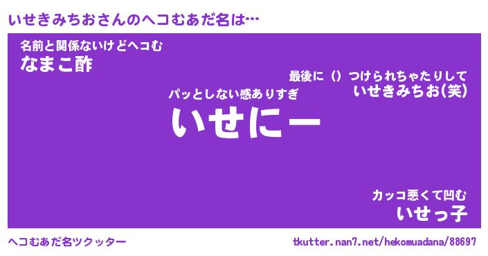 | 男性向けラノベタイトル風あだ名 | 『イセキミチオアートオンライン』 |