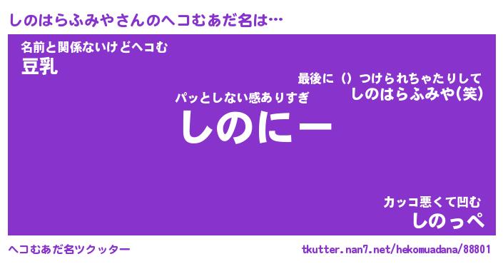 | 男性向けラノベタイトル風あだ名 | 『しのはらふみやの憂鬱』 |