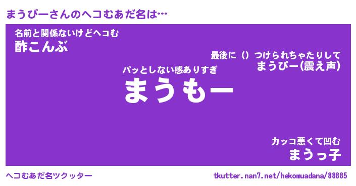 | 意味不明あだ名 | 『ペロリンまうぴー』『永久保存まうぴー』 |