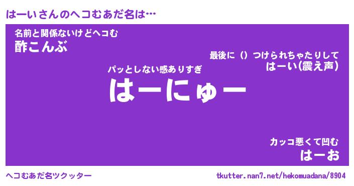 | 2回繰り返すあだ名 | 『はーはー』『ははーー』『ぬるぬる』 |