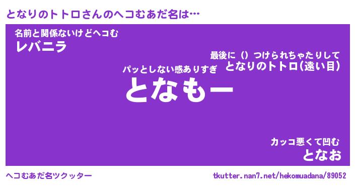 | 男性向けラノベタイトル風あだ名 | 『となりのトトロの憂鬱』 |