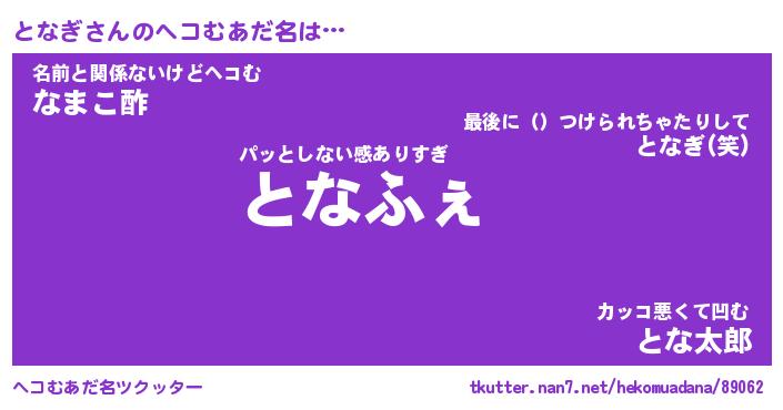| ファンタジー風あだ名 | 『トナフェル』『エターナルトナギー』 |