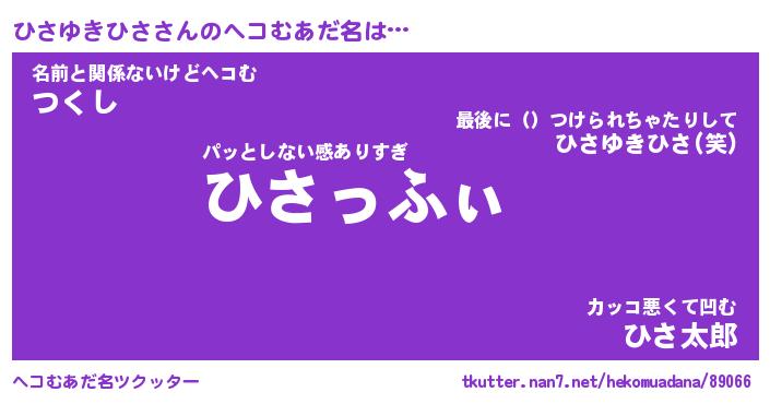| 男性向けラノベタイトル風あだ名 | 『ひさゆきひさの憂鬱』 |