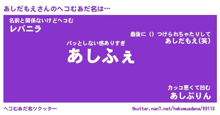 | ファンタジー風あだ名 | 『アシフェル』『エターナルアシダモエー』 |