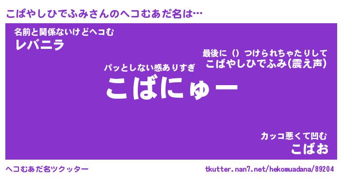 | ポケモン風あだ名 | 『コバチュウ』『コバヤダネ』 |
