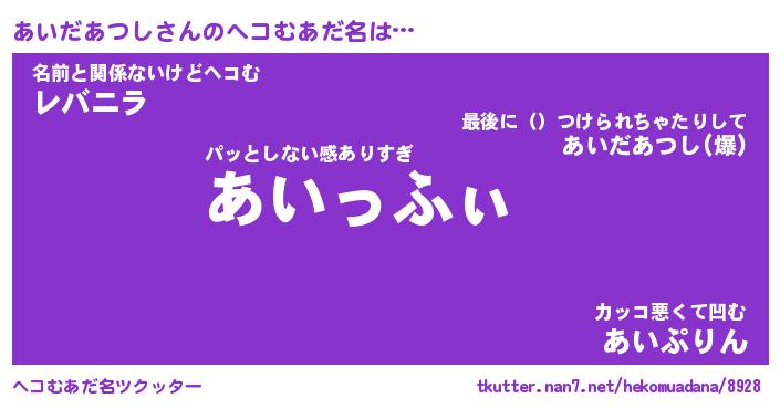 | ポケモン風あだ名 | 『アイチュウ』『アイダダネ』 |