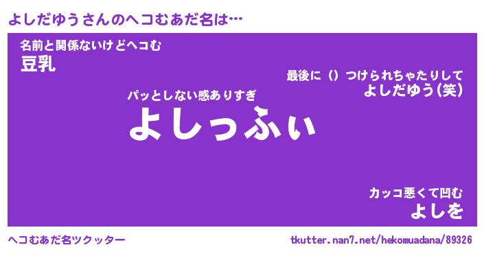| 胡散臭い通販商品みたいなあだ名 | 『必ず成功する霊験あらたかなお札…その名も「よしだゆう」』 |