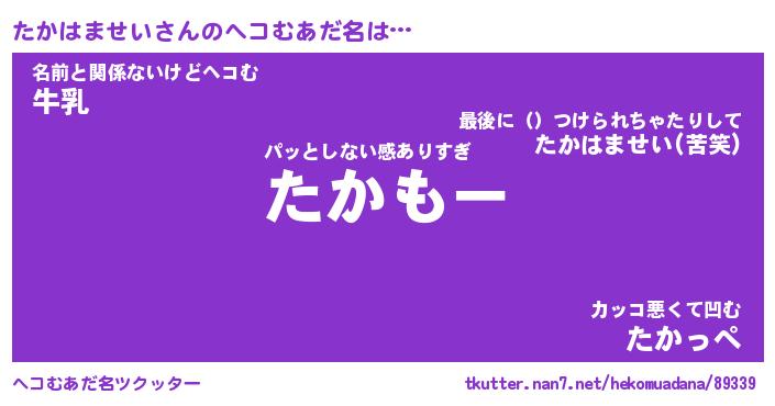 | ヒーロー風カッコイイあだ名 | 『スーパータカハマセイ』『暗黒騎士タカ』 |