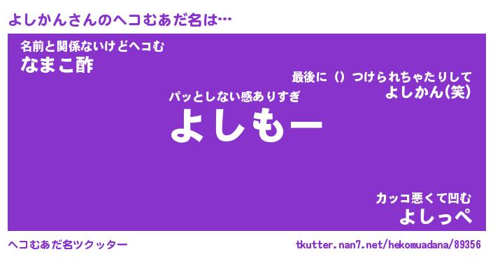 | 意味不明あだ名 | 『ペロリンよしかん』『永久保存よしかん』 |