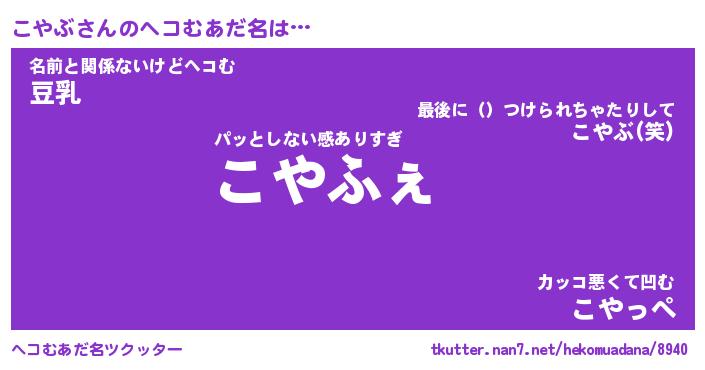 | 意味不明あだ名 | 『ペロリンこやぶ』『こやぶフォーエバー』 |