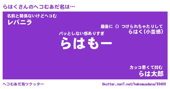| 意味不明あだ名 | 『ペロリンらはく』『らはくフォーエバー』 |