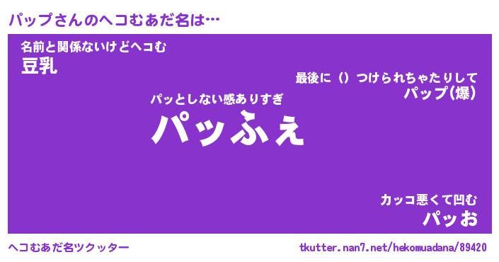 | 意味不明あだ名 | 『ペロリンパップ』『パップフォーエバー』 |