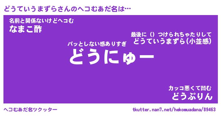 | 2回繰り返すあだ名 | 『どうどう』『どどうう』『ぬるぬる』 |