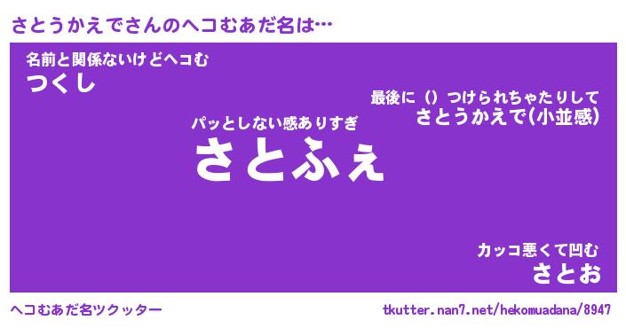 | ヒーロー風カッコイイあだ名 | 『スーパーサトウカエデ』『暗黒騎士サト』 |