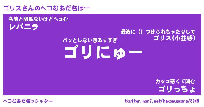 | 意味不明あだ名 | 『ペロリンゴリス』『ゴリスフォーエバー』 |