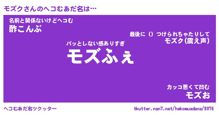 | ポケモン風あだ名 | 『モズチュウ』『モズクダネ』 |