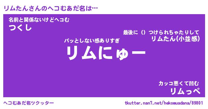 | 2回繰り返すあだ名 | 『リムリム』『リリムム』『あんあん』 |