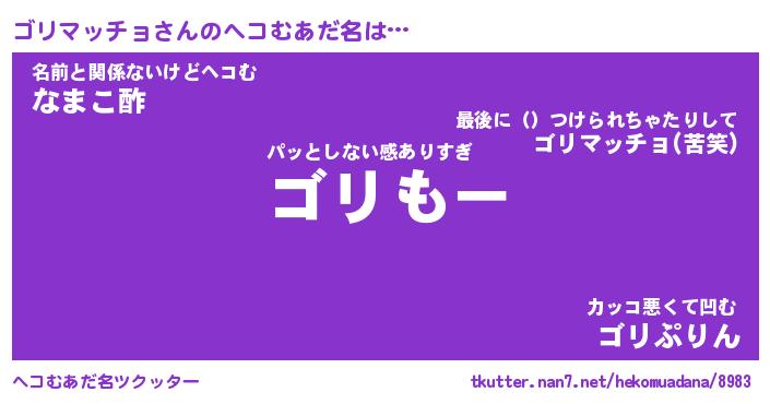 | ポケモン風あだ名 | 『ゴリチュウ』『ゴリマダネ』 |