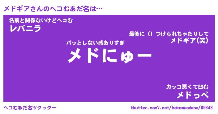 | ヒーロー風カッコイイあだ名 | 『スーパーメドギア』『天弓騎士メド』 |