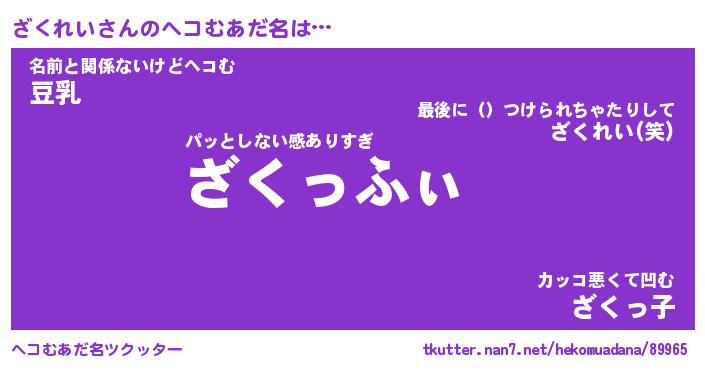 | 男性向けラノベタイトル風あだ名 | 『ざくれいの憂鬱』 |