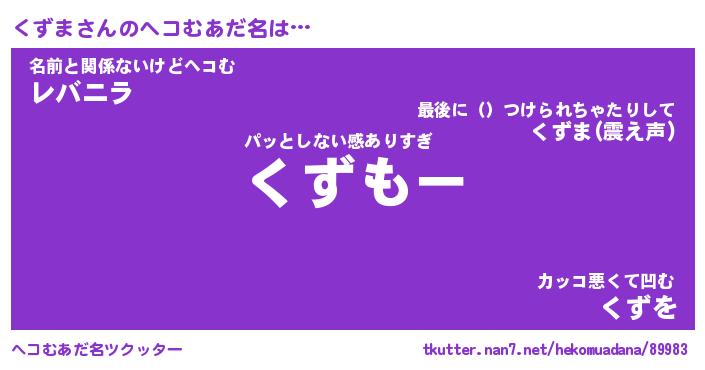 | 欧米人風あだ名 | 『マイケルくずま』『くずまクリステル』 |