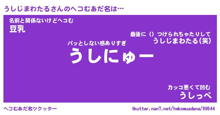 | 女子向けラノベタイトル風あだ名 | 『うしじまわたる姫と円卓の騎士』 |