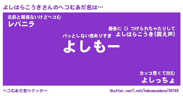 | 恥ずかしいあだ名 | 『プリティーよしはらこうき』『よしちん』 |