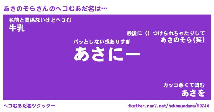 | ファンタジー風あだ名 | 『アサフェル』『エターナルアサノソラー』 |