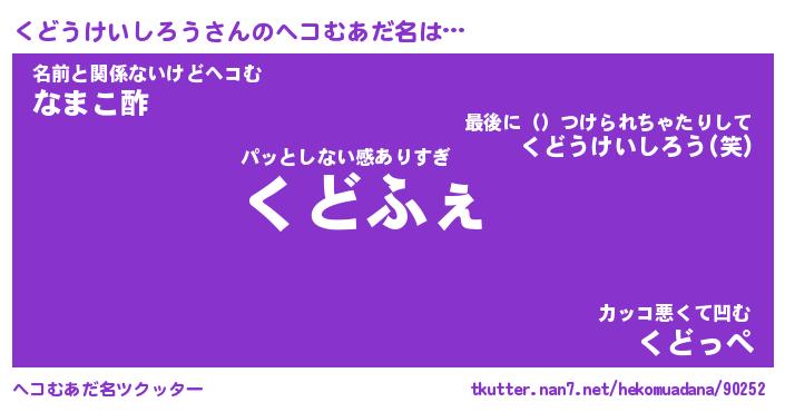 | 男性向けラノベタイトル風あだ名 | 『くどうけいしろうの憂鬱』 |