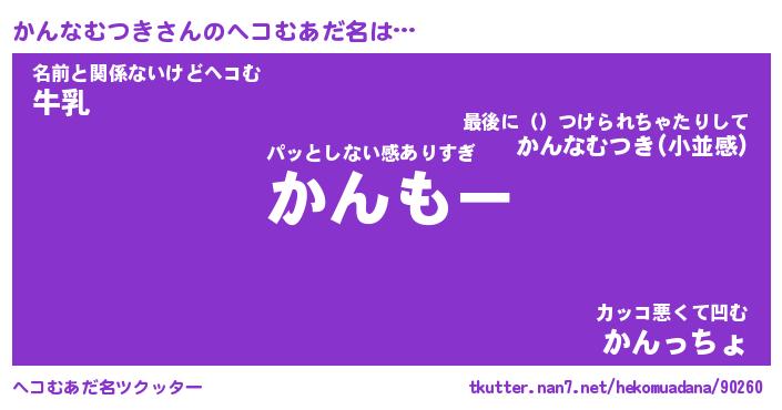 | ヒーロー風カッコイイあだ名 | 『スーパーカンナムツキ』『魔戒騎士カン』 |