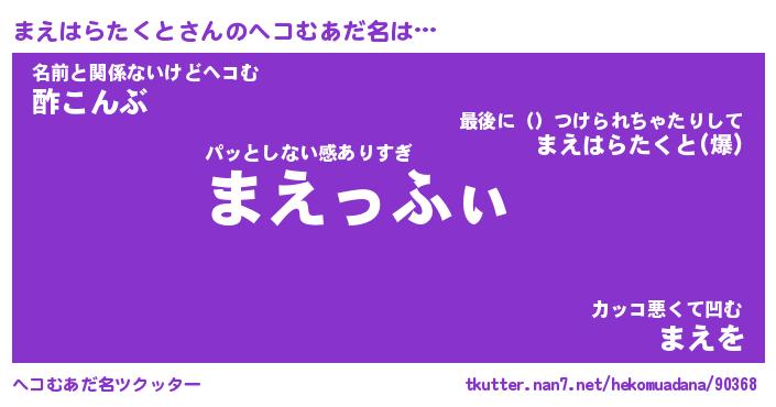 | ポケモン風あだ名 | 『マエチュウ』『マエハダネ』 |
