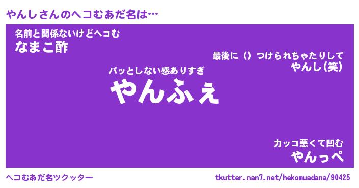 | 意味不明あだ名 | 『ペロリンやんし』『やんしフォーエバー』 |