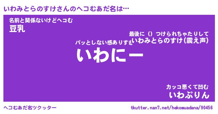 | 胡散臭い通販商品みたいなあだ名 | 『必ず成功するブレスレット…その名も「いわみとらのすけ」』 |