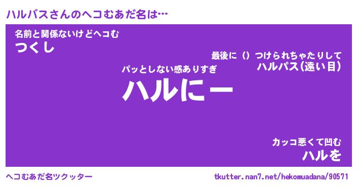 | 男性向けラノベタイトル風あだ名 | 『ハルパスアートオンライン』 |