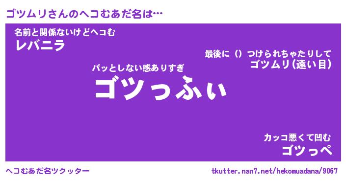 | ポケモン風あだ名 | 『ゴツチュウ』『ゴツムダネ』 |