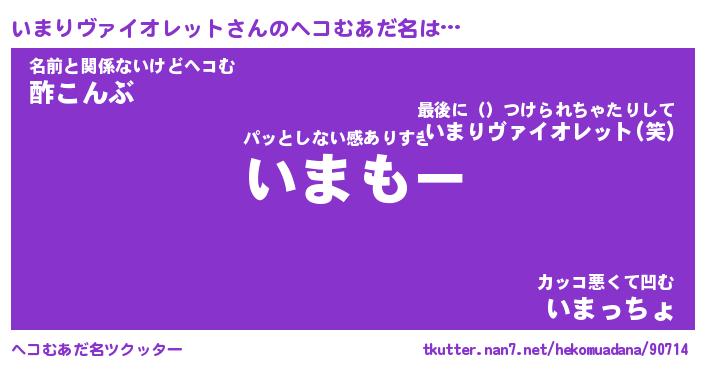 | 胡散臭い通販商品みたいなあだ名 | 『モテモテ間違いなし霊験あらたかなお札…その名も「いまりヴァイオレット」』 |