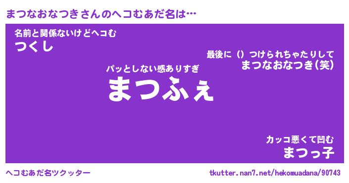 | 男性向けラノベタイトル風あだ名 | 『マツナオナツキアートオンライン』 |