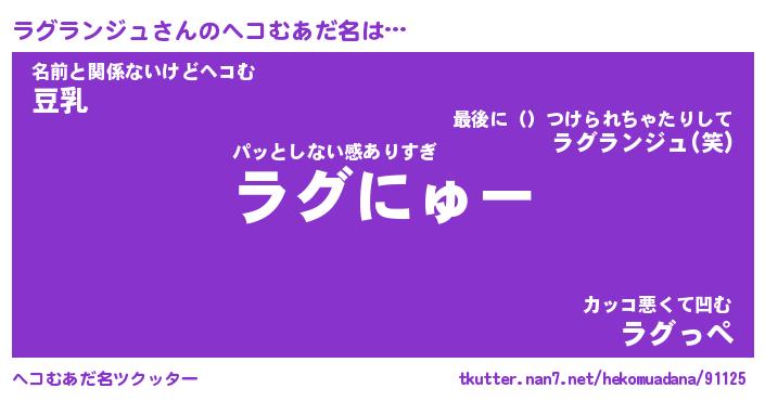 | ポケモン風あだ名 | 『ラグチュウ』『ラグラダネ』 |